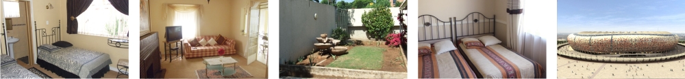 · Two private bachelor apartments with separate entrances, en suite bedrooms with own TV's, Rates Rates are per day, and include breakfast. En Suite Room (sleeps 2): R 475 per person Bachelor Apartments: R 515 per person Bathroom On Corridor: R420 per person En Suite Single: R500 per person A full cold or hot breakfast of your choice is served in the main dining room. Here you can get advice and local tips to help you plan your day. Halaal catered for. 2010 Accomodation: Headford Guest House is very well situated to offer quick and easy access to major stadiums for visitors during the 2010 Fifa World Cup. Proximity to stadiums: Soccer City Stadium: 6km We will also be offering a transfer service to those visitors who wish to be transported to and from matches. Furthermore, outings can be arranged to the following places of interest: Gold Reef City |